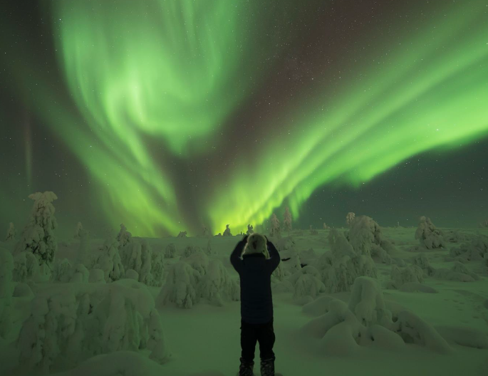 La favola ci avvolge, si sente e si assorbe l'essenza più profonda di questo luogo remoto. Qui, la natura intatta dipinge il suo capolavoro: l'aurora boreale illumina la notte artica con luci danzanti, mentre gli abeti carichi di neve si trasformano in sculture di ghiaccio che mozzano il fiato.
